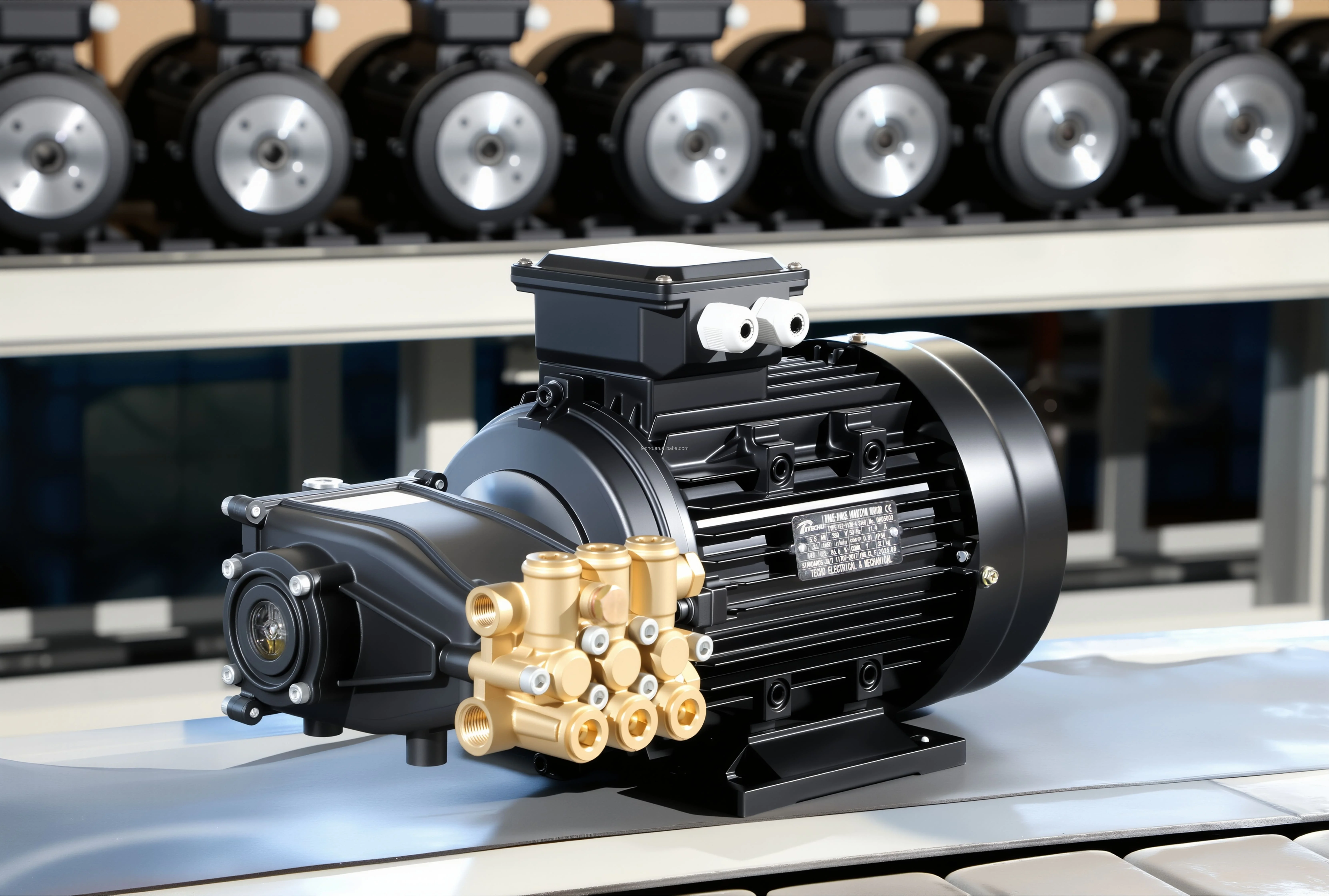 High-efficiency TEFC squirrel cage motor with hollow shaft design, specially developed for high-pressure washers, car wash systems and industrial cleaning equipment. IEC standard mounting, low noise, high torque, reliable and maintenance-friendly.